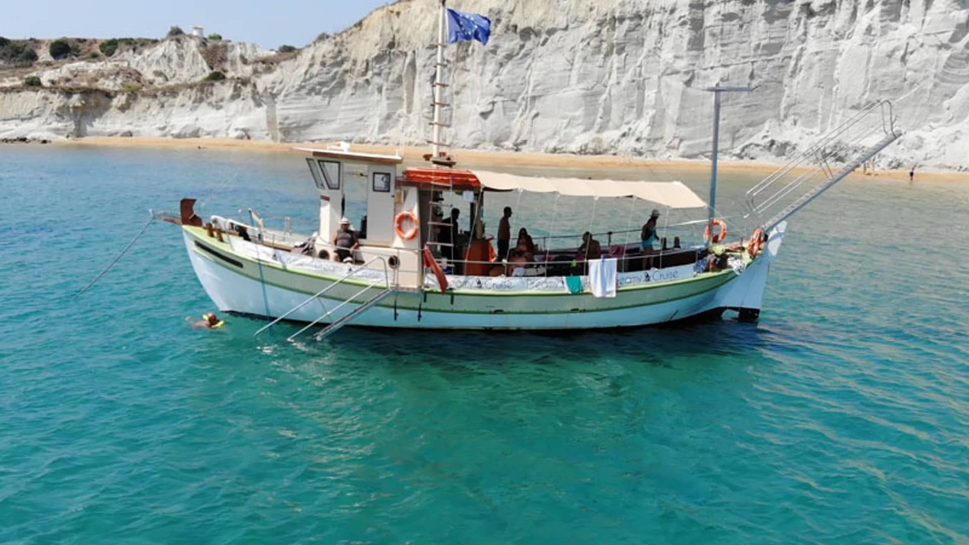 Set sail on a magical journey aboard our traditional Greek wooden boat, Konstantinos, and discover the breathtaking beauty of White Rocks Beach, Vardiani Island, and the iconic Xi Beach. This is more than just a cruise—it’s an unforgettable adventure where you’ll explore secluded beaches, hidden gems, and pristine waters, all while making new friends from around the world!