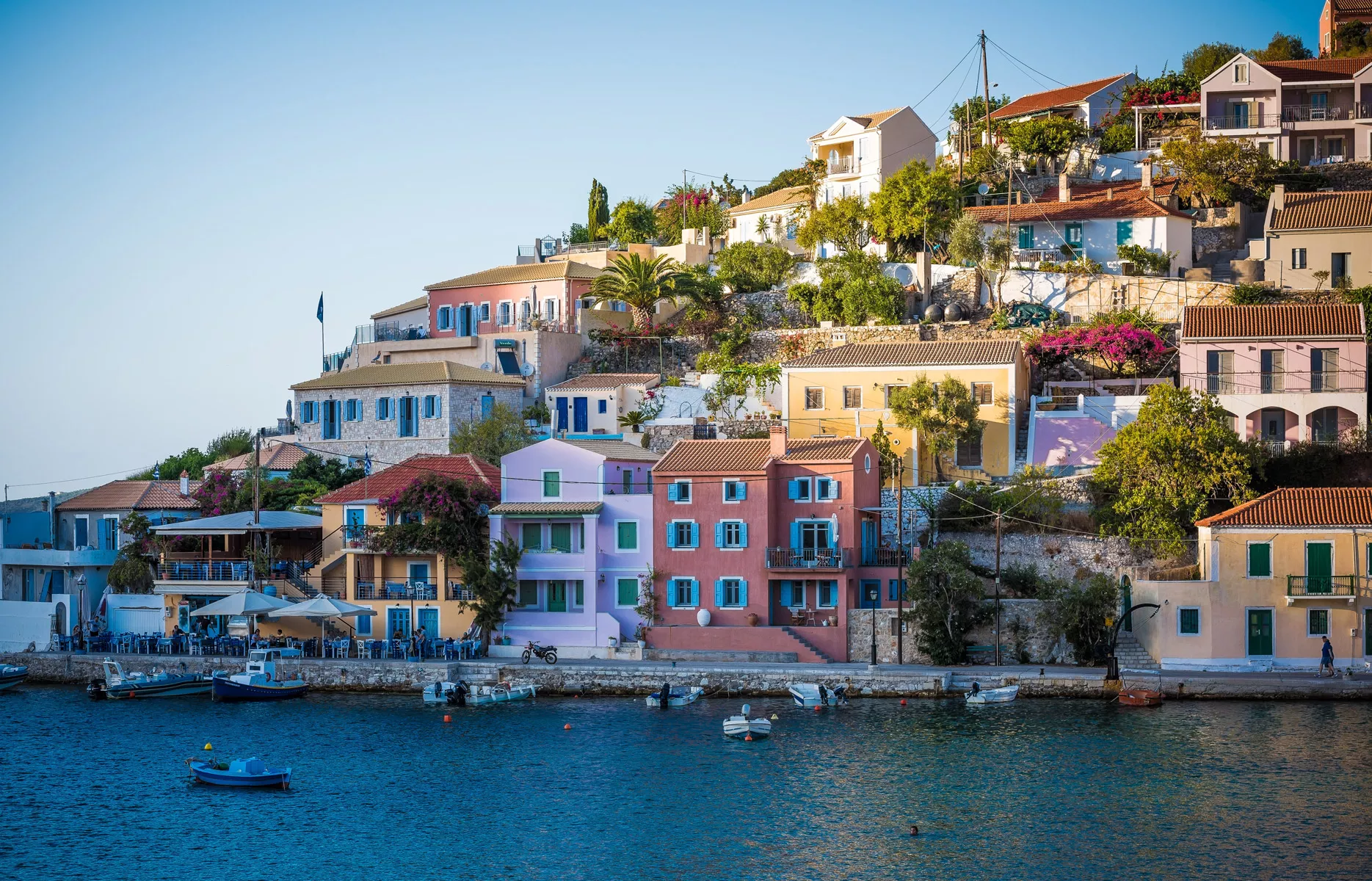 Guests will see dramatic coastal cliffs, crystal-blue bays, lush mountain landscapes, traditional stone villages, the underground beauty of Melissani Lake, and local shops and cafés offering regional specialties.